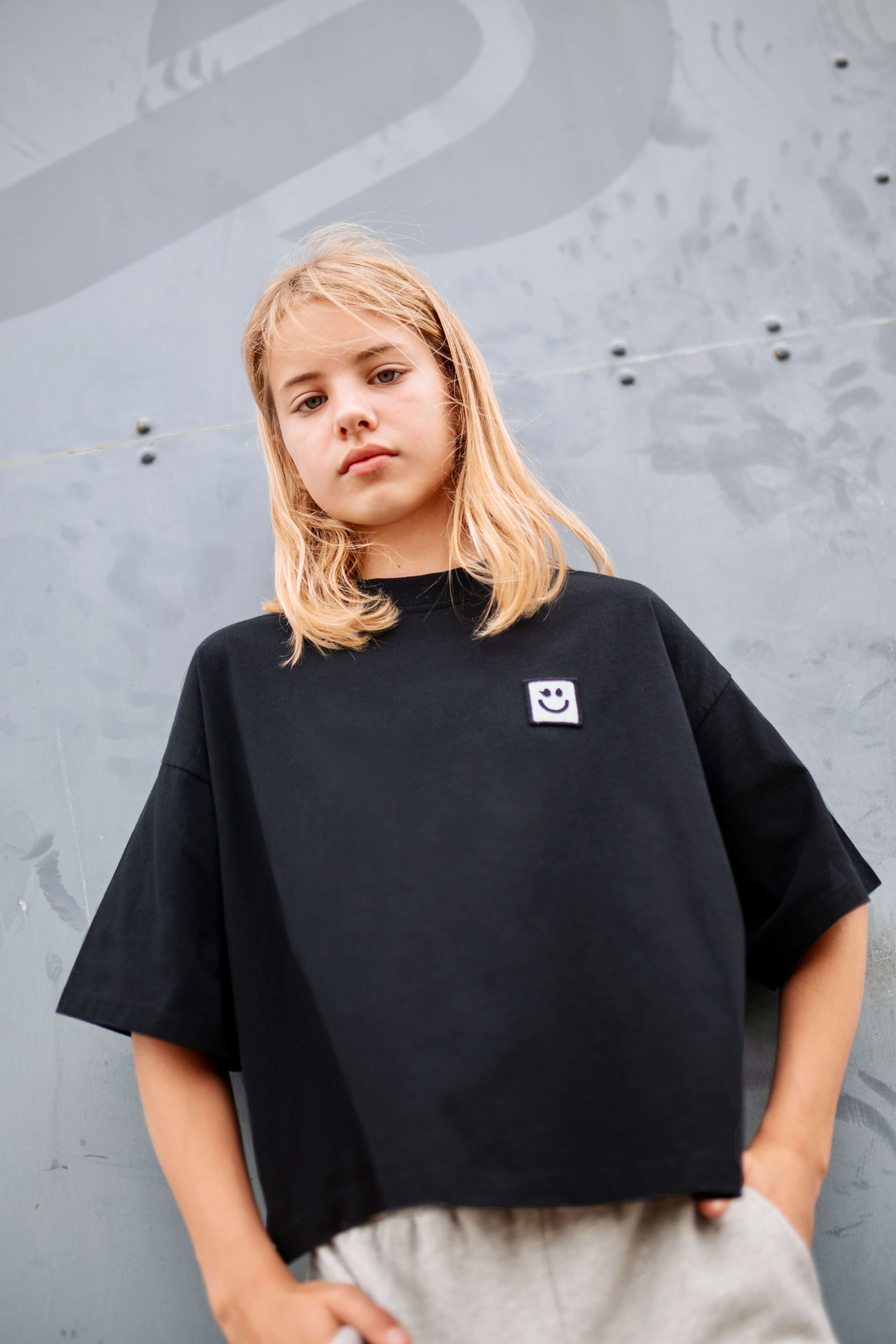 The LMH Boxy T-Shirt in black delivers a clean silhouette with subtle character. Crafted from soft organic cotton jersey, this black boxy kids t-shirt combines modern proportions with everyday comfort.