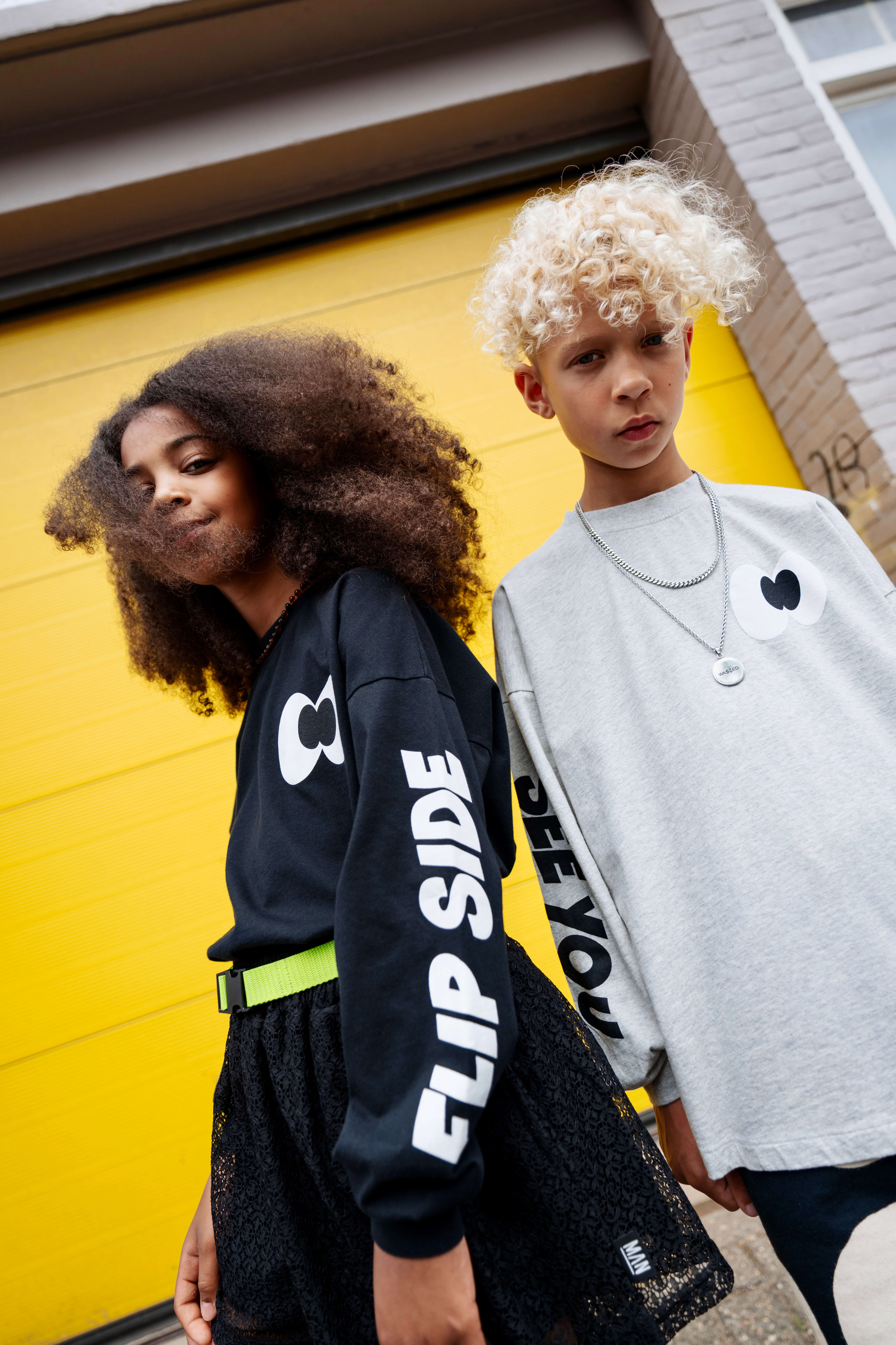 The FLIPSIDE Longsleeve in black is built for statement dressing. Crafted from soft organic cotton jersey, this black organic kids longsleeve combines everyday comfort with unapologetic street attitude.