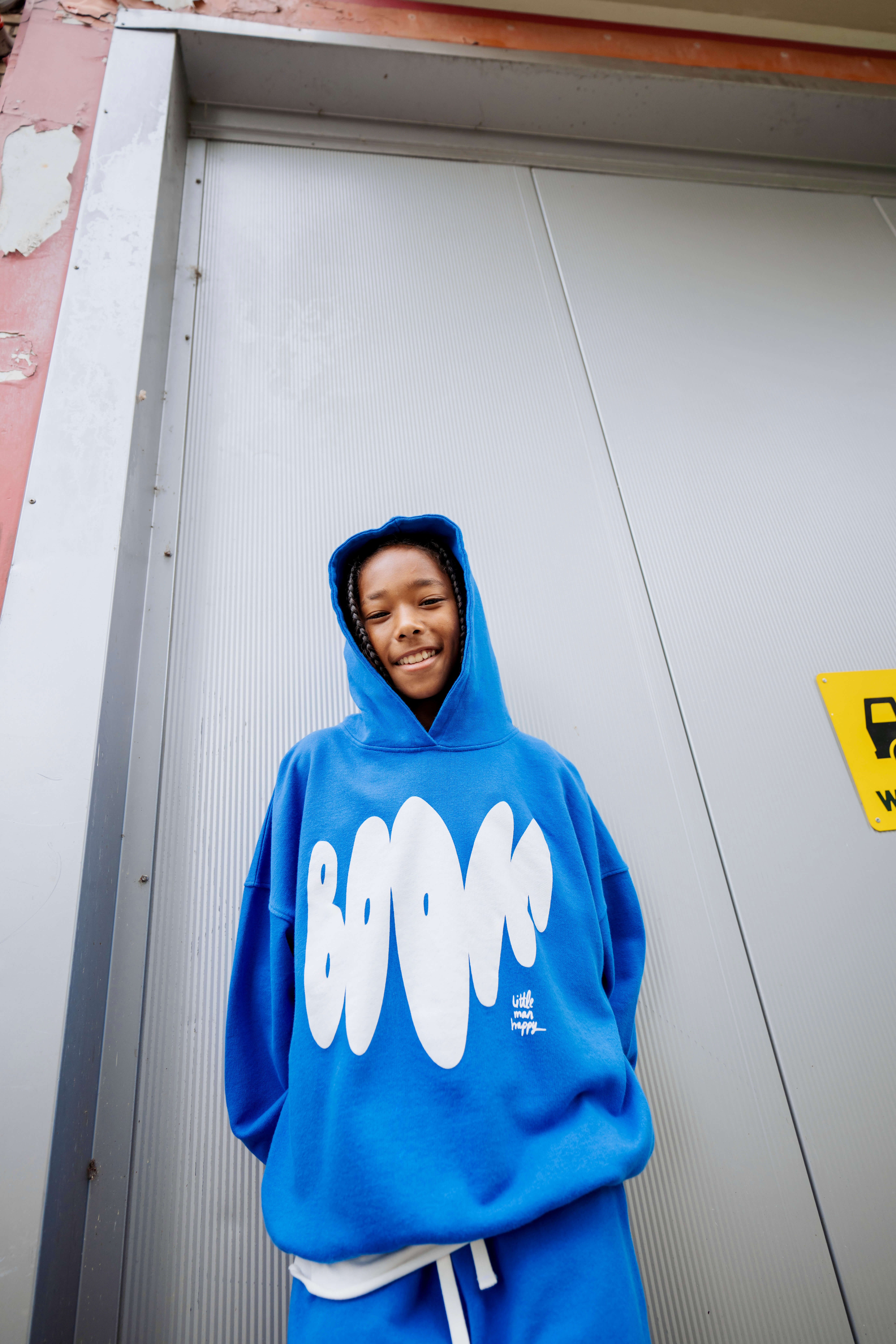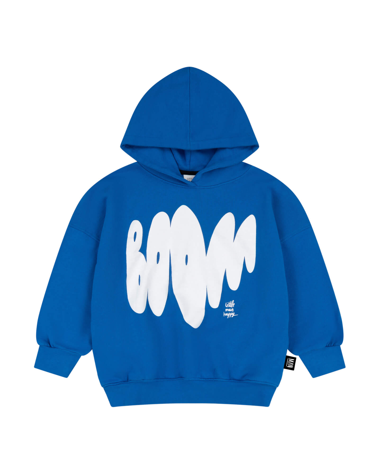 The blue organic kids hoodie is where bold graphics meet everyday comfort. The deep blue base keeps it clean and wearable, while the oversized BOOM placement print brings that loud, playful edge Little Man Happy is known for.