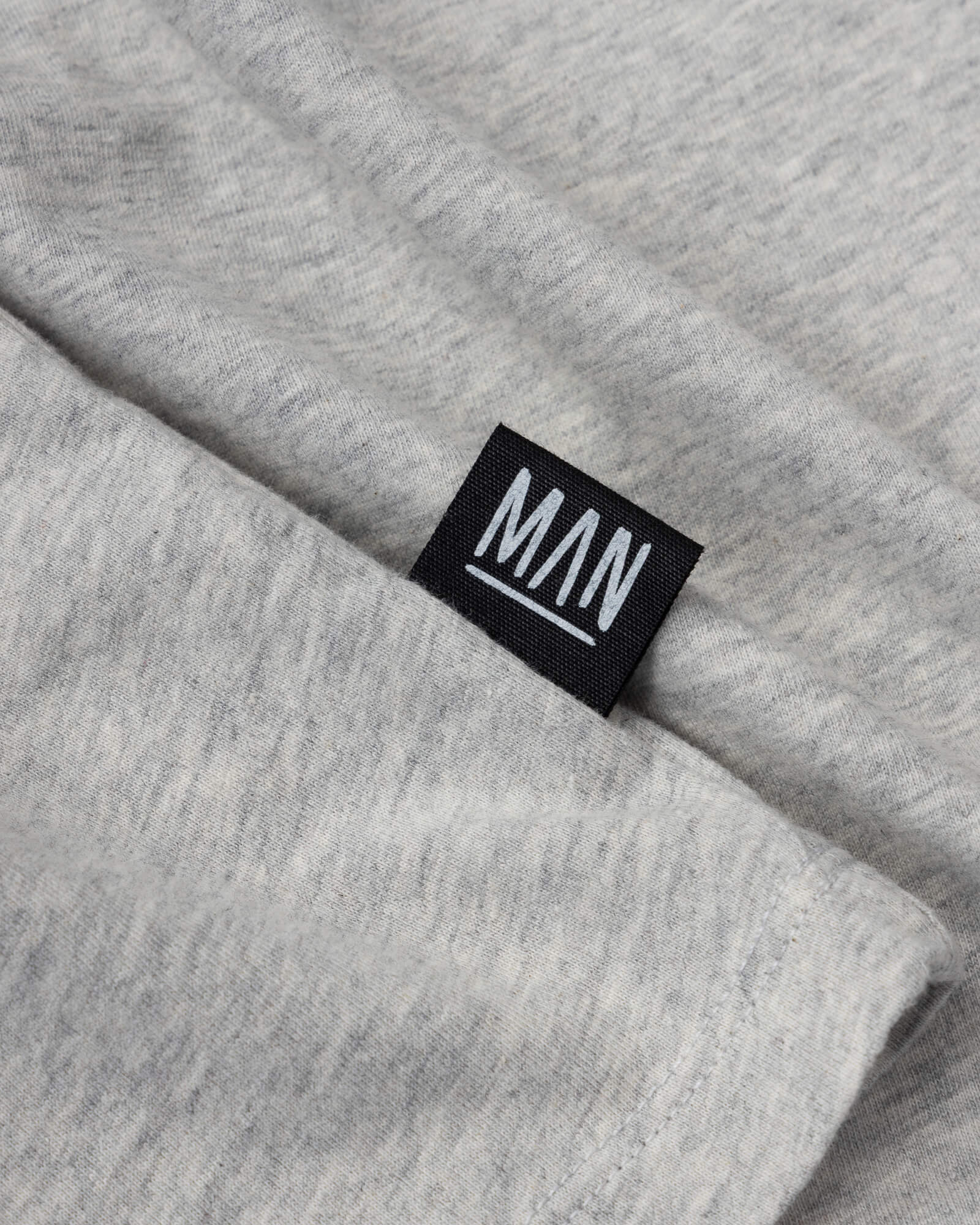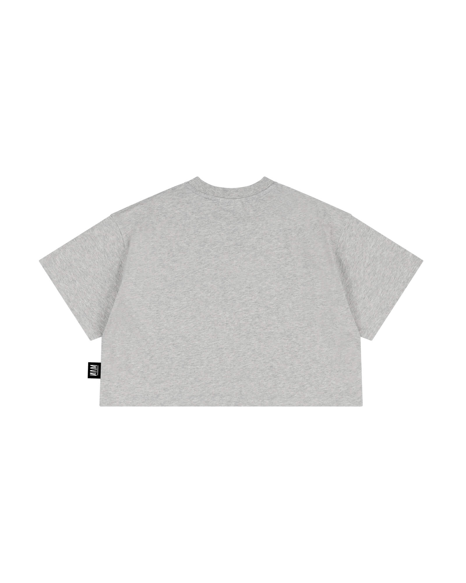 The melange grey base creates a versatile foundation, while the small MINI BOO chest graphic adds a playful yet understated accent. Clean and minimal from a distance, expressive on closer look.