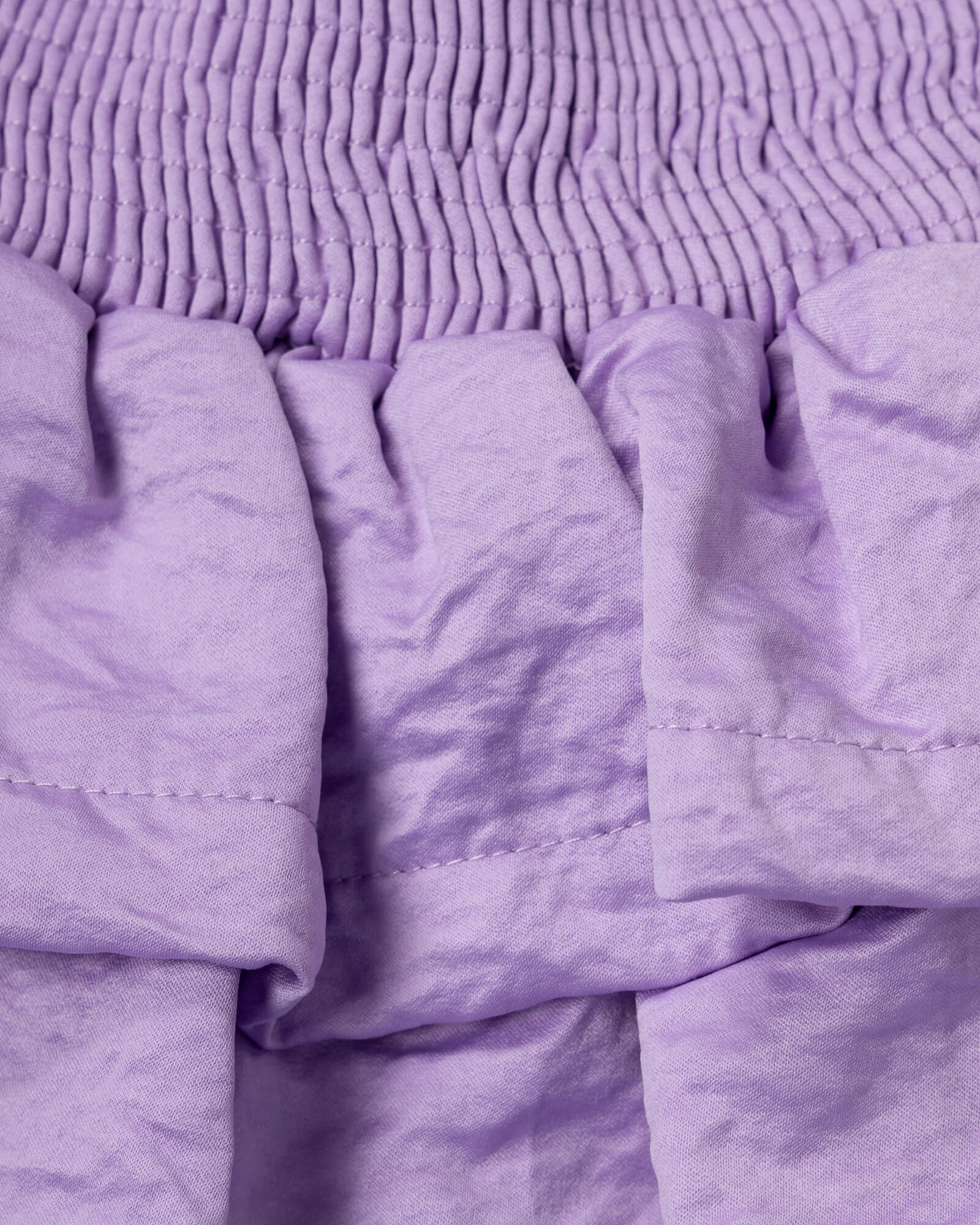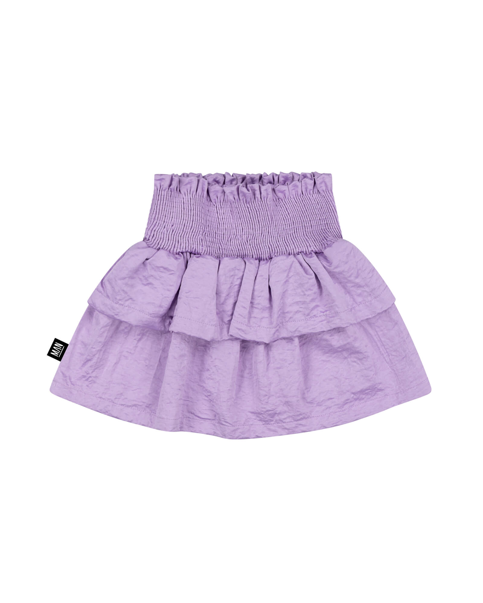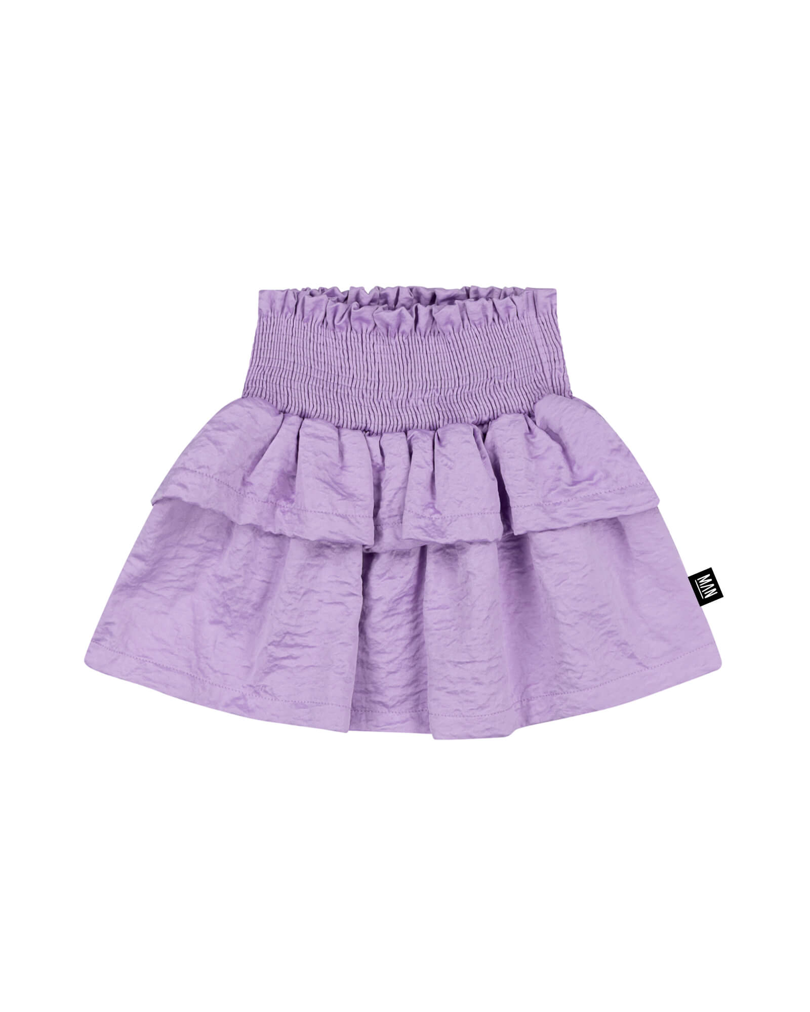 Lavender smocked skirt for kids in a silky woven rayon blend with fluid drape and subtle sheen. The elastic shirred waistband ensures a flexible fit, while layered volume creates a bold yet effortless silhouette.
