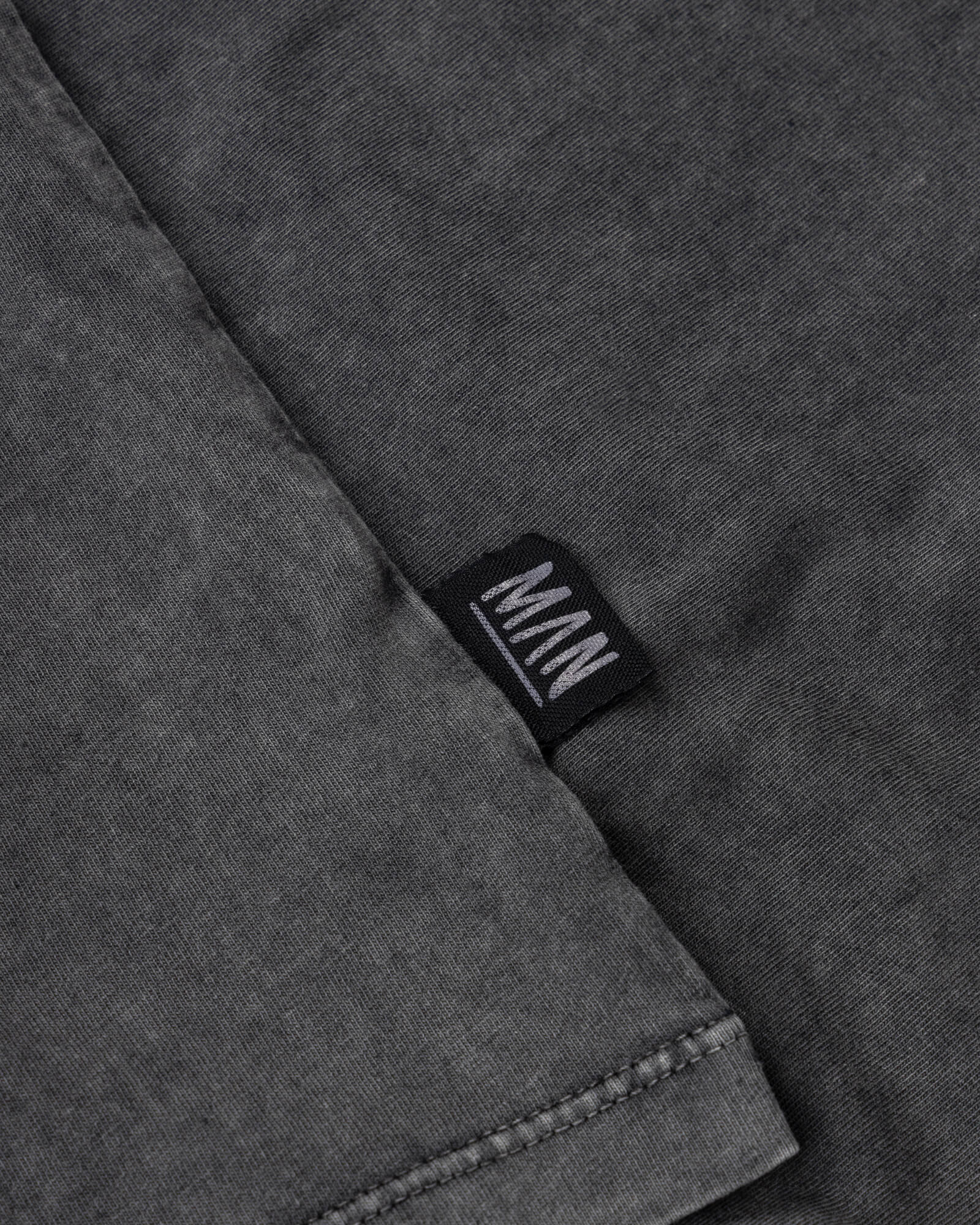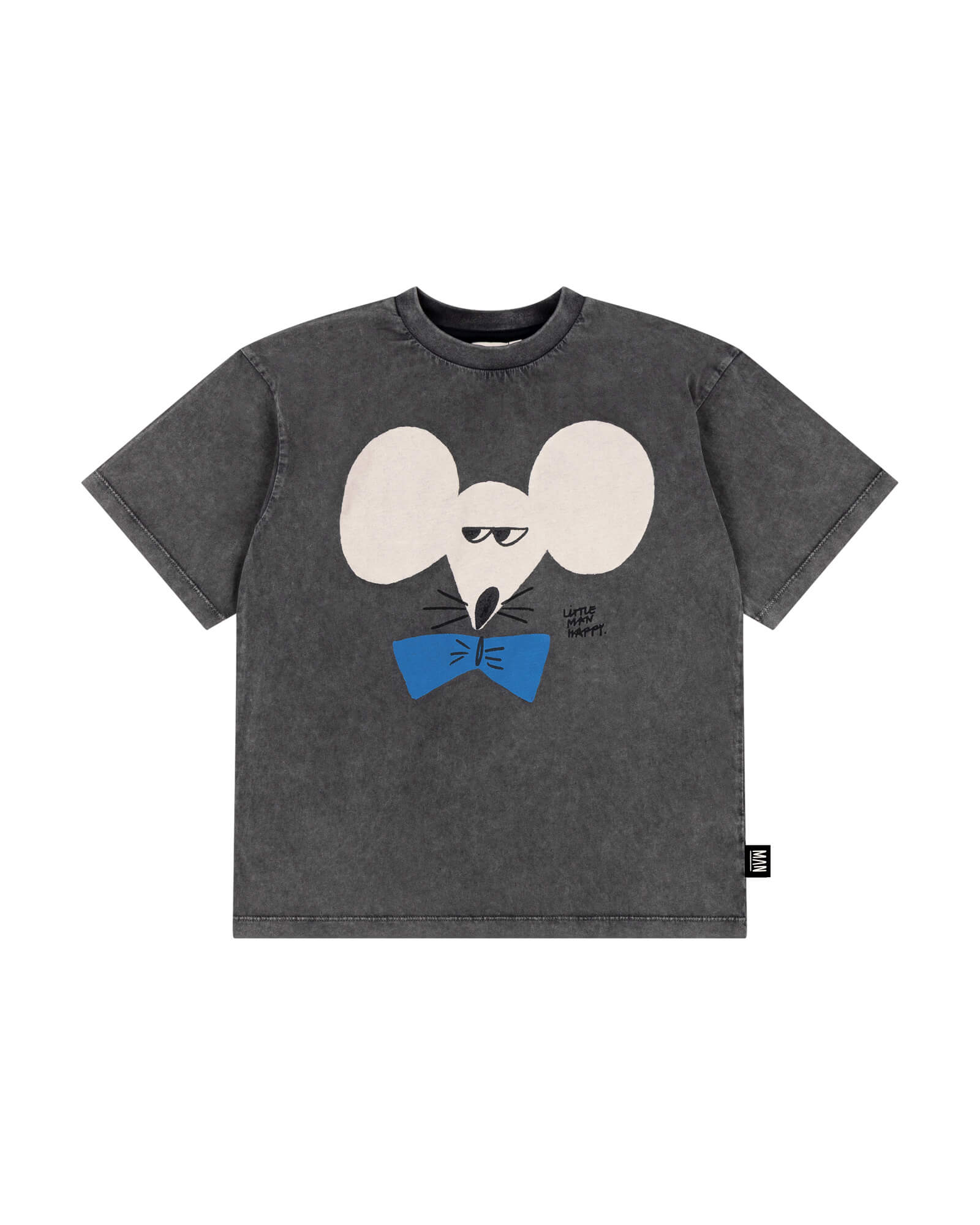 The faded wash gives the fabric depth and character, while the bold MAD MOUSE graphic adds playful rebellion. Clean lines meet expressive illustration, creating a strong visual contrast against the muted grey base.